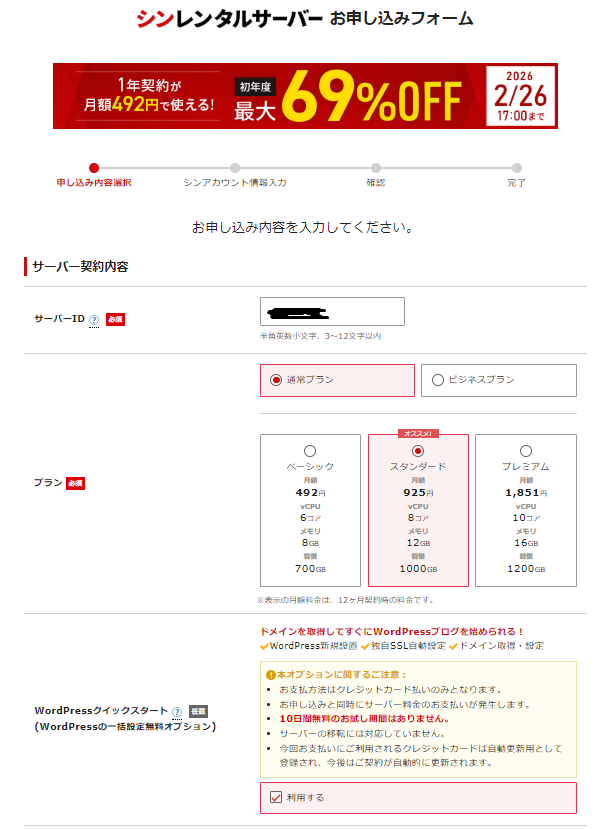 シンレンタルサーバーの申し込みは非常に簡単で、初心者でも10分程度で完了します。