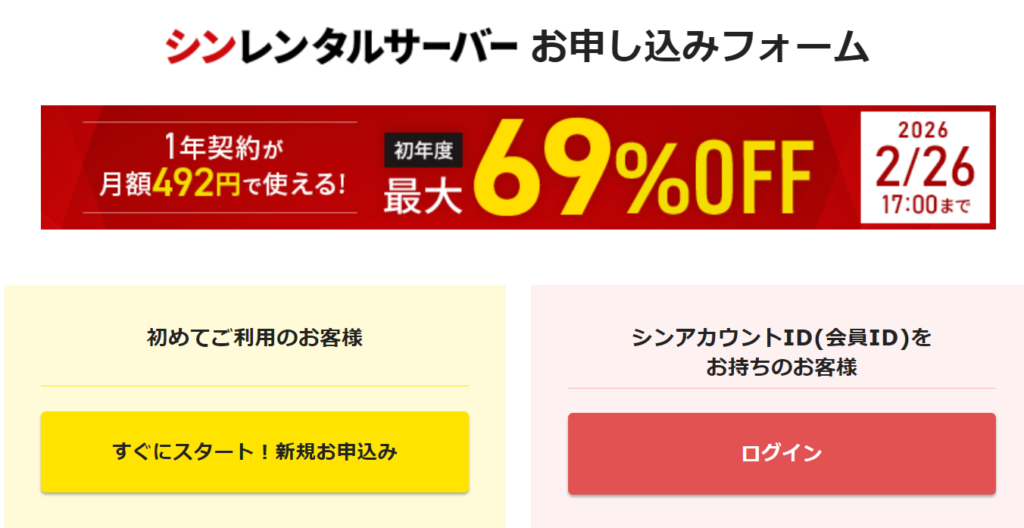 シンレンタルサーバーの申し込み方法